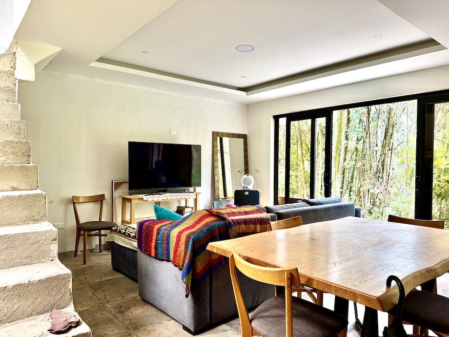 According to the listing, the center of the property is a rustic two-story home that is about ninety-eight percent complete and already livable, while still leaving a few finishing touches for a new owner to personalize. The house includes a master suite with a terrace overlooking the river, a guest bedroom, and living areas that open onto a generous deck, with additional outdoor laundry and bodega storage.1